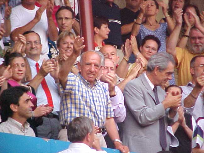 Dieciséis plazas de toros, nueve españolas y siete francesas, han celebrado durante la pasada temporada 2002 corridas en las que se han lidiado toros de Victorino Martín. De ellas, sólo en la de Madrid (San Isidro y Feria de Otoño) se ha acudido en dos ocasiones. En dos de estas plazas ha debutado la ganadería (Pontevedra y Aire Sur L’Adour) y en ambas fue una experiencia emocionante para el público. En Pontevedra triunfaron Esplá (que salió por la Puerta Grande) y Encabo. En la plaza francesa de Aire Sur L’Adour cortaron orejas los tres toreros, dos de ellos (Padilla y Dávila Miura) salieron por la Puerta Grande, uno de los toros fue premiado con la vuelta al ruedo y el mayoral de la ganadería paseó el anillo (en la foto, Victorino responde a los aplausos de los espectadores).Pero ha habido dos momentos trascendentales para la ganadería este año y los dos en plazas emblemáticas para este hierro. El primero de ellos fue la corrida lidiada en la Feria de San Isidro, en la que el toro Murciano, reconocido a la postre como el más bravo de la Feria, fue premiado con la vuelta al ruedo. La otra, el importante gesto de El Juli en Bilbao, en la primera de sus tres tardes en la Semana Grande.